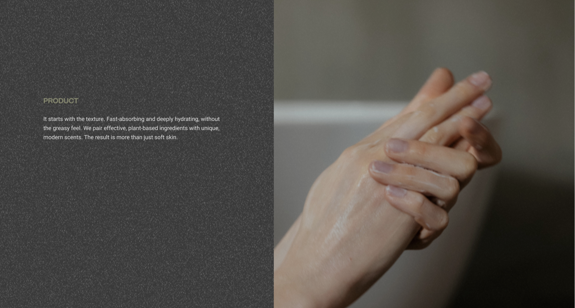 It starts with the texture. Fast-absorbing and deeply hydrating, without the greasy feel. We pair effective, plant-based ingredients with unique, modern scents. The result is more than just soft skin.